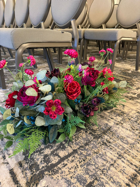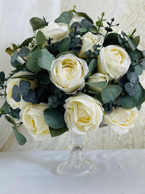 £40 Green and ivory florals and foliage in a stone look urn. £40